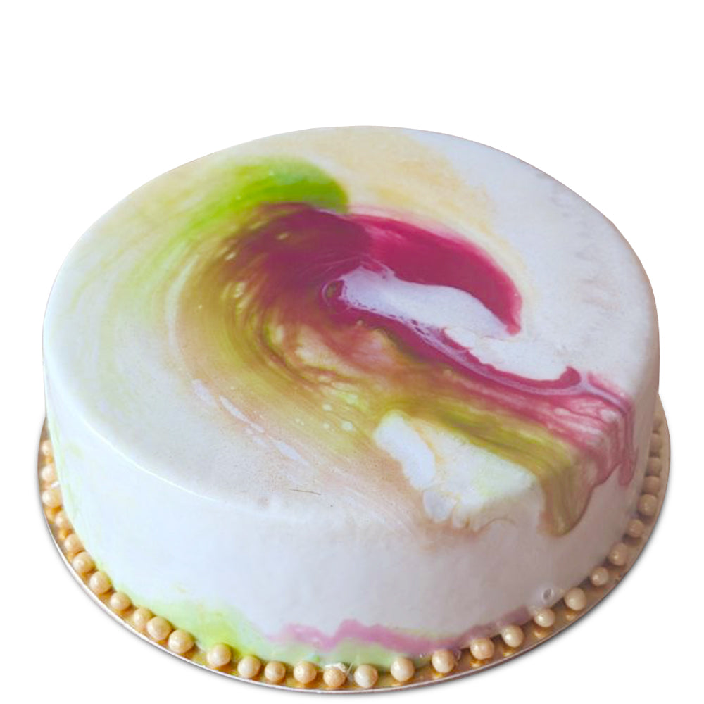 Please note that the mirror glaze creates its own unique pattern each time. The final product as well as the handmade decorative elements of the cakes and desserts may look different than what you see in the photo.